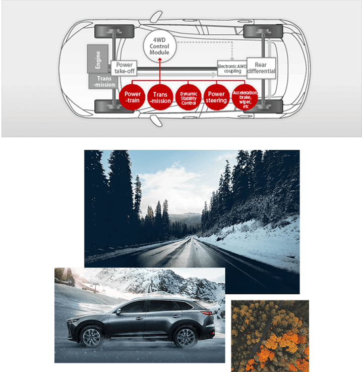 多个传感器模块对感知到的驾驶意图和路面状况进行解析,4WD控制模块瞬间演算出必要的后轮扭矩量,并向4WD联轴器发送指令,向后轮传达合适的驱动力,预防前轮打滑。